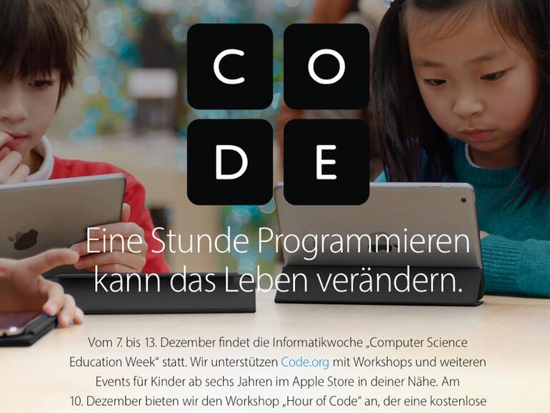 Anlässlich der weltweiten Informatikwoche finden ab heute in fast allen 468 Apple Stores mehrere Programmier-Workshops des Formats „Hour of Code“ für Kinder ab 6 Jahren statt. Einfach anmelden, hingehen und mitmachen. Apples Verkaufs-Chefin Ahrendts kommentiert: „Die Workshops Hour of Code sind unglaublich beliebt in unseren Läden. Unsere Teams lieben die Möglichkeit, junge Leben derart zu bereichern. Zu dieser Zeit des Jahres fällt mir kein besseres Geschenk ein, als […] die kommende Generation aufzuklären und zu inspirieren.“