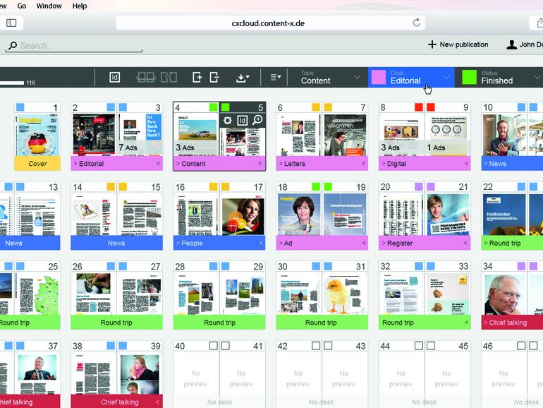 Grundlage des Systems ist der CX planner von ppi Media: ein Planungsmodul, das sich für die Produktion von kleineren Tageszeitungen, Magazinen und Corporate-Publishing-Projekten eignen soll. Die Integration der im Vergleich noch schlankeren Redaktionslösung CX cloud mit InDesign (ab CS6) erfolgt über ein Plug-in, das als Download zur Verfügung steht. Der aktuelle Produktionsstatus in InDesign lässt sich jederzeit im Web verfolgen: Änderungen in den InDesign-Dokumenten werden schnell im Browser sichtbar. Anwender können zudem eigene Templates erstellen, auf dem Server ablegen und jederzeit für spätere Projekte auf diese zugreifen. Auch an die Integration von Werbeanzeigen in aktuelle Planungen wurde bei der Umsetzung der CX cloud gedacht: Diese können als PDF hochgeladen und per Drag & Drop auf den gewünschten Seiten platziert werden. CX cloud informiert dabei über Abweichungen zur Seitenplanung.
