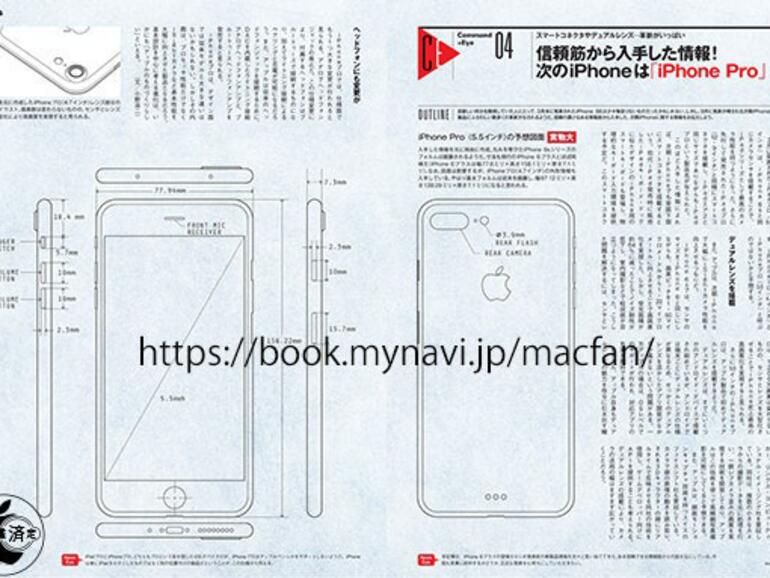 Ob das große iPhone 7 wieder mit einem "Plus" am Namen ergänzt oder in iPhone 7 Pro umbenannt wird, mag derzeit noch niemand genau sagen können. Zumindest etwas verlässlicher scheinen hingegen die Quellen, die schon vom Design und der verbauten Hardware gehört haben wollen. Jüngstes Beispiel ist das japanische Magazine Mac Fan, das in der aktuellen Ausgabe mit einer technischen Zeichnung aufwartet, bei der es nur noch wenig Fantasie für das fertige Produkt bedarf.