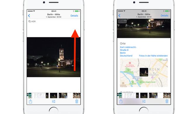 In iOS 10 hat Apple ordentlich an der Fotos-App gearbeitet. Diese analysiert nun sämtliche Fotos und lässt dadurch die Suche nach Personen, Orten sowie Objekten und Landschaften zu. Daneben verbirgt sich eine weitere Funktion in der Fotos-App. Öffnet man nämlich ein Foto, dann legt ein einfacher Wisch nach oben weitere Details zum Foto frei. Dies kann der Standort, die zusehenden Personen oder weitere zugehörige Aufnahmen sein. Viel Spass beim Entdecken.