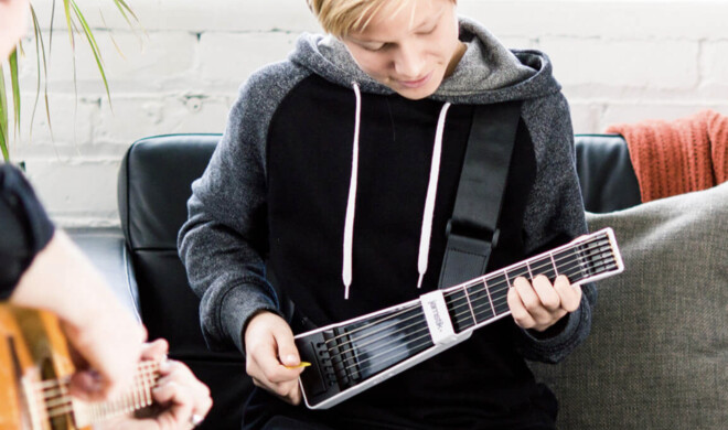Die SmartGuitar ist ein ziemlich einfacher und komfortabler Weg Gitarre spielen zu lernen. Mittels Bluetooth verbindet sich das Gerät mit Ihrem iPhone und schon erhält man interaktive Gitarrenstunden, damit auch als Anfänger schnell erste Riffs beherrscht. Aufgrund der kleinen Größe ist es super mobil und lässt Sie überall an Ihren Fertigkeiten pfeilen.