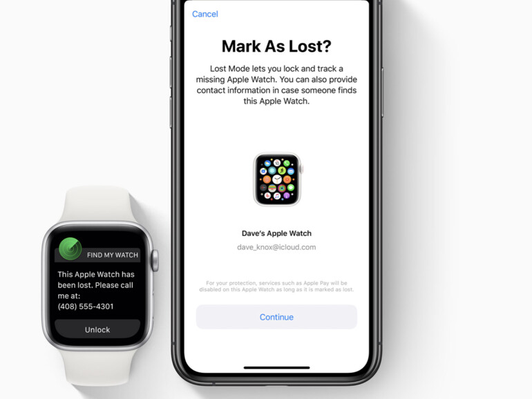 Es gibt auch die Option das Gerät „als verloren markieren“. Damit wird das Gerät gesperrt, Apple Pay deaktiviert und Finder können Ihre Kontaktinformationen auf dem Display einsehen. Sollte Sie das Geräte nicht wiederbekommen, dann können Sie es auch aus der Ferne löschen.