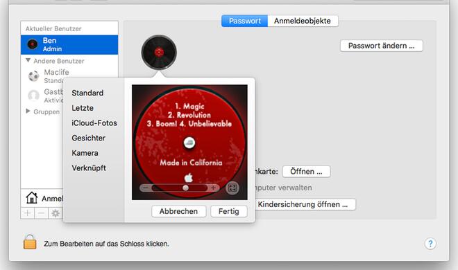Eine ganz besondere Hommage an Steve Jobs findet man in den Systemeinstellungen unter "Benutzer & Gruppen". Dort kann man eine Schallplatte als Benutzerbild festlegen. Jedoch ist der Text darauf nicht willkürlich gewählt, sondern bezieht sich auf die Worte, die Steve Jobs sehr oft während Produktpräsentationen verwendet hat.