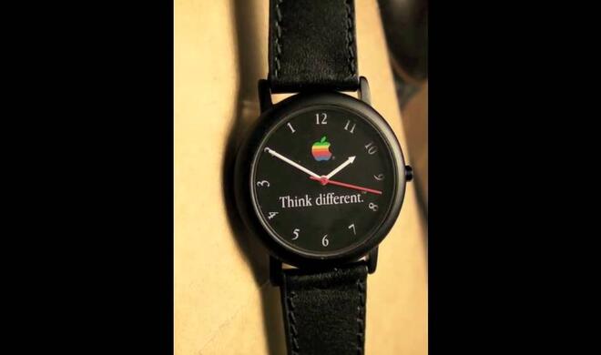 Mit der Apple Watch brachte Apple nicht seine erste Uhr auf den Markt. Schon etwa fünzehn Jahre früher gab es anlässlich der "Think Different"-Kampagne ein analoge Apple Watch mit Logo und Slogan. Besonders an der Uhr ist, dass die Zeiger gegen den normalen Uhrzeigersinn laufen, um die Andersartigkeit zu symbolisieren. Die Uhr kann man übrigens immer mal wieder auf eBay ergattern, aber Vorsicht vor billigen Kopien.
