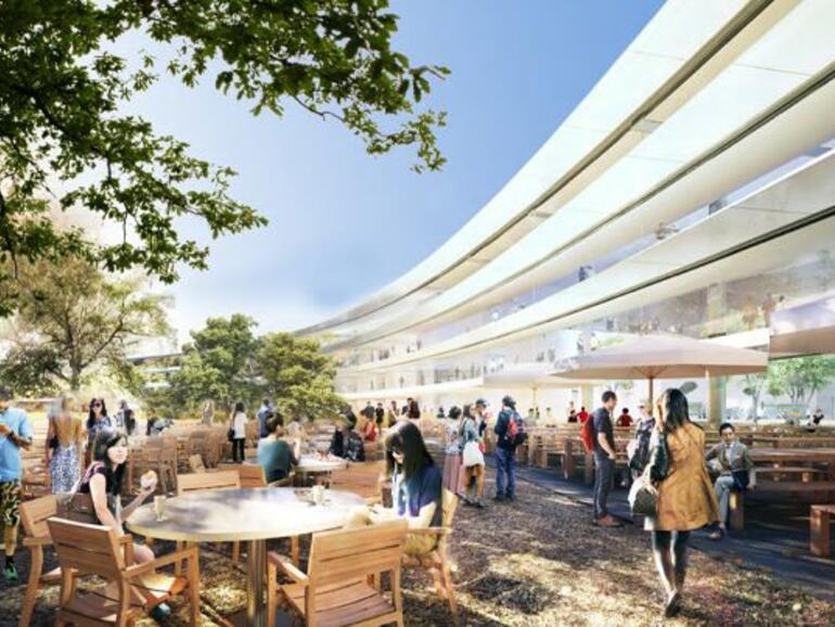 Im vergangenen Jahr hat Apple mehrere Konzeptbilder des Gebäudes veröffentlicht. Alle Büros, Konferenzräume, Kantinen und Werkstätten sind in einem gigantischen Ring angeordnet. In der Mitte befindet sich eine sehr große Freifläche, die der Erholung dienen soll. Umgeben ist das Gebäude von weiteren großzügigen Grünanlagen.