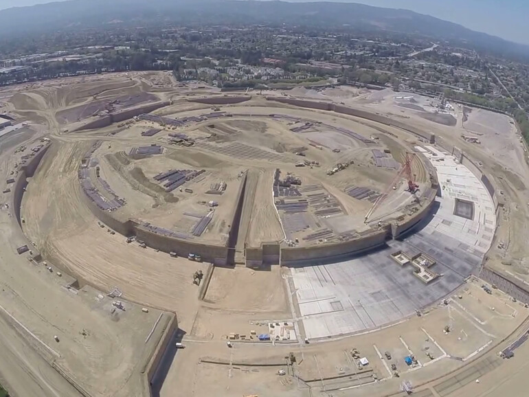 Die Bauarbeiten an Apples neuem Hauptquartier in Cupertino haben begonnen. Der YouTube-Nutzer McMinn hat eine GoPro-Hero-3+-Kamera an seiner Drohne des Typs DJI Phantom 2 befestigt und ist damit über die Baustelle geflogen. Das daraus entstandene acht-minütige eindrucksvolle Video hat er anschließend auf YouTube veröffentlicht.