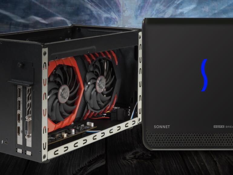 Sonnet hat die Thunderbolt-3-Versionen seiner Gehäuse Echo Express SEL und Echo Express SE I vorgestellt, die mit PCIe-Karten bestückt werden können. Auf der Messe IBC2017 wird Sonnet zudem seine neue eGFX Breakaway Box vorstellen. Dabei handelt es sich um eine Erweiterungslösung mit Thunderbolt 3, mit der Grafikkarten an ein eGFX-kompatibles Notebook angeschlossen werden können. Unterstützt werden AMD Radeon R9 und RX Chipsets sowie die NVIDIA GeForce GTX 7, 9 und 10 Serie. Natürlich können auch andere PCIe-Karten eingebaut werden. Der eingebaute Lüfter mit variabler Geschwindigkeit soll besonders leise sein.