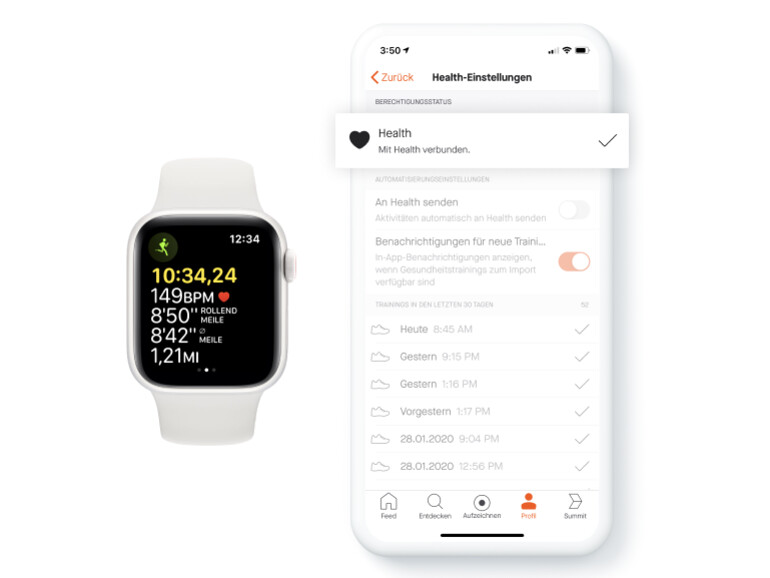 Durch die Integration von Apples HealthKit werden auf Wunsch alle Trainingseinheiten direkt nach Strava importiert und auf Strava festgehaltene Aktivitäten ebenso mit der Health-App synchronisiert.