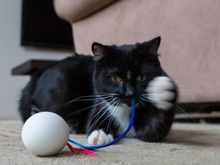 Nicht als Katzenspielzeug konzipiert, aber dennoch interessant für die Vierbeiner kann der kleine Kugelroboter Sphero sein. Um zu sehen, wie Katzen auf Sphero reagieren, muss man nur auf YouTube die Begriffe „Sphero“ und „Cats“ eingeben.