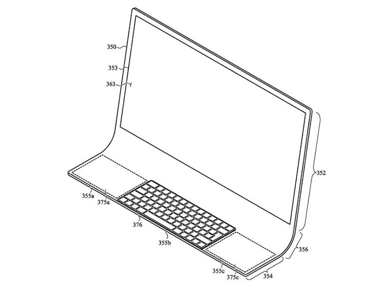 Es handelt sich um eine Patentanmeldung von Apple, die jetzt veröffentlicht wurde (via AppleInsider). Der All-in-One-Mac besteht dabei aus einer einzigen gebogenen Glasscheibe – Schluss mit der Teilung zwischen Display und Gehäuse.