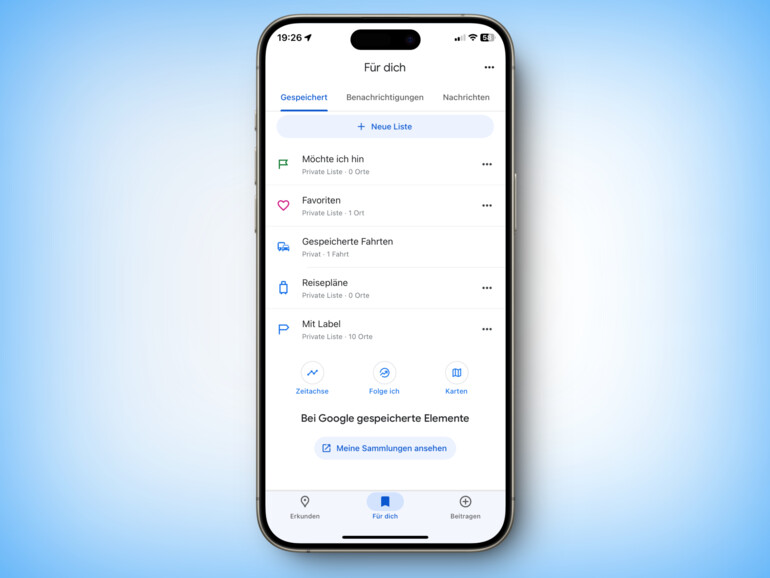 Der „Für dich“-Tab in Google Maps ersetzt den früheren „Gespeichert“-Tab und fasst die Abschnitte „Gespeichert“, „Benachrichtigungen“ und „Nachrichten“ zusammen, die zuvor separat waren.