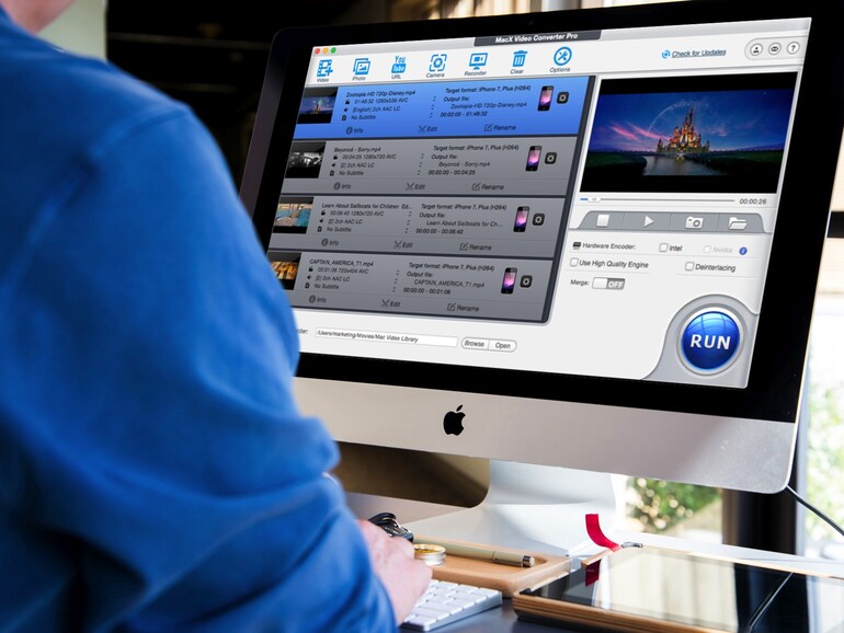 Der MacX Video Converter will nicht weniger als der beste All-in-One Video Converter für den Mac zum Downloaden, Umwandeln, Bearbeiten und Aufnehmen von Videos sein. Mit unterstützten 320+ Video- und 50+ Audiocodecs hilft er Ihnen, 4K UHD, MKV, AVCHD, M2TS, MP4, AVI, WMV, MOV, VOB und weitere in ein beliebiges Video- oder Audioformat Ihrer Wahl zu konvertieren, damit Sie Videos in iTunes und QuickTime genießen, mit Final Cut Pro und iMovie bearbeiten, auf YouTube und Facebook teilen oder auf iPhone 7/7 Plus/SE/6s/6s Plus, iPad Air 2/Mini 4, Android, Samsung Galaxy Note 5/Edge, HTC, WP8, PS4 und vielen mehr abspielen können. Der Converter ermöglicht es darüber hinaus, Videos und Musik von 300+ Seiten zu downloaden und YouTube in MP4/MP3 umzuwandeln für die Offline-Wiedergabe. Der MacX Video Converter ist zudem der weltweit erste Video Converter mit Unterstützung für Intels QSV-Hardware, welche die Geschwindigkeit der Videokonvertierung stark zu beschleunigen vermag.