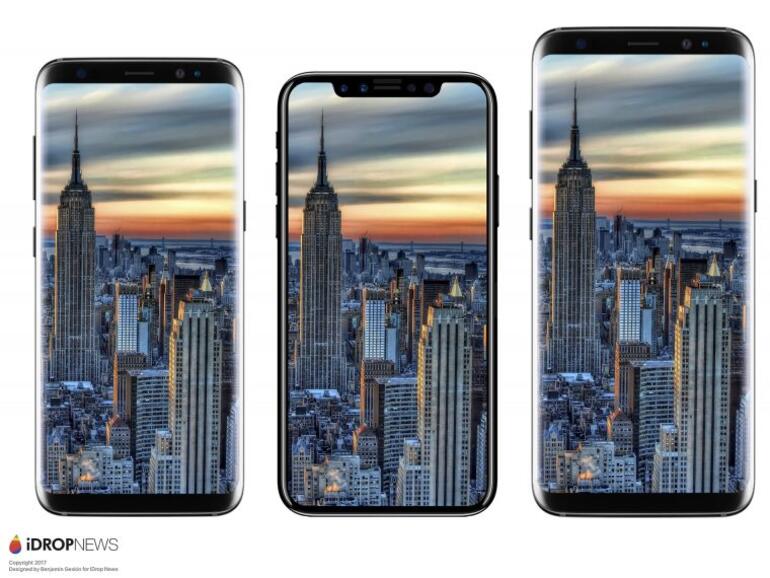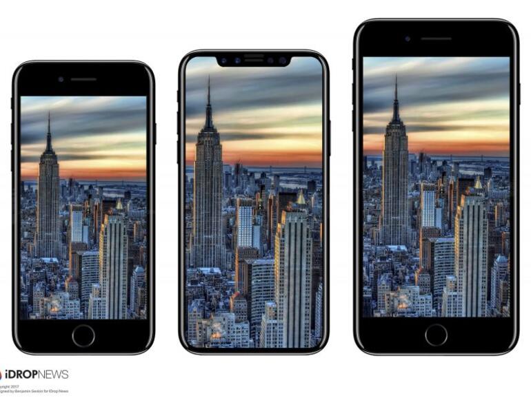 In den Renderings von iDropnews wird ein "iPhone 8" mit Edge-to-Edge-Display gezeigt, das von seinen Maßen her zwischen dem iPhone 7 und dem iPhone 7 Plus von Apple liegt. Größer als das iPhone 7 Plus soll das neue Modell nicht sein - es nutzt die Oberfläche nur besser aus. Das neue iPhone 8 soll voraussichtlich 144 mm x 71mm x 7,7 mm groß sein, zumindest meint das iDropnews nach den bisher veröffentlichten Informationen erraten zu können. Das iPhone 7 ist 138,3 x 67,1 x 7,1 mm groß.