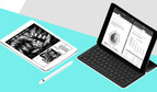 - Der Hintergrund ist in vier farbige Kacheln unterteilt. Drei davon (Spacegrau, Gold und Roségold) passen zu den Farben des jetzigen iPhone 6s.
