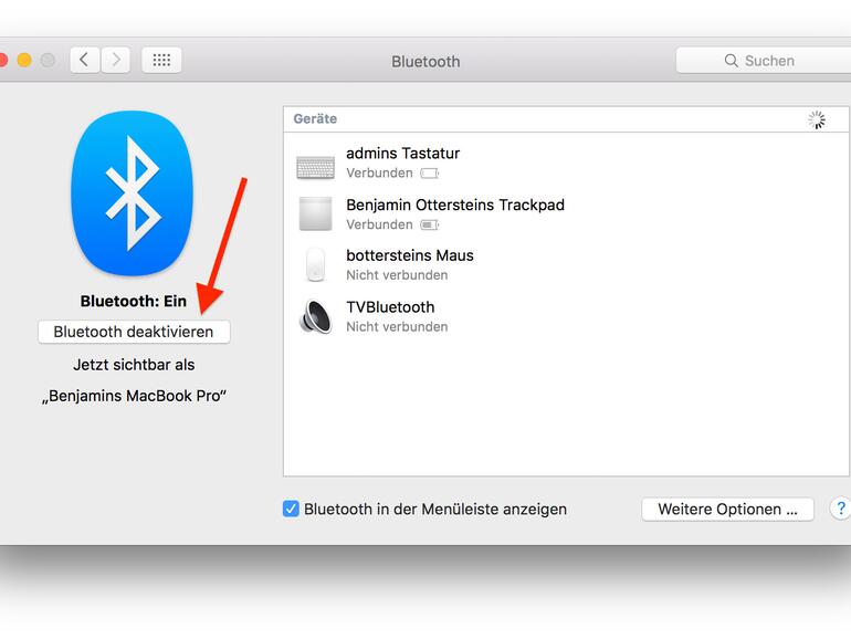Schritt 4: Wähle danach "Bluetooth" aus und klicke auf "Bluetooth deaktivieren".