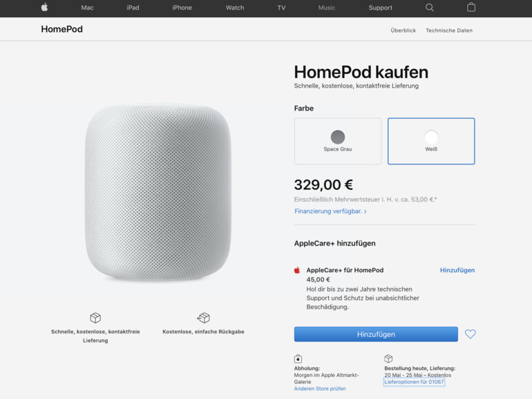 Nun kam neue Bewegung in das Thema, da in Apples Online Store kurzzeitig der HomePod als „Ausverkauft“ markiert war. Kurze Zeit später war er wieder verfügbar und hatte eine Lieferzeit von knapp einem Monat. Mittlerweile fiel diese wieder auf wenige Wochen.