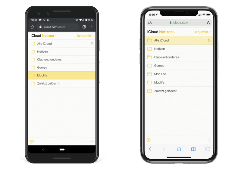 Auch die Notiz-Web-App ähnelt stark dem iOS-Pendant und lässt Nutzer die eigenen Notizen durchsuchen. Beim Erstellen gibt es allerdings Unterschiede. So lassen sich zwar Tabellen und Checklisten erstellen sowie die Schriftformate anpassen, aber es ist nicht möglich Zeichnungen oder Fotos einzufügen. Notizen mit etwaigen Inhalten lassen sich dennoch problemlos öffnen.