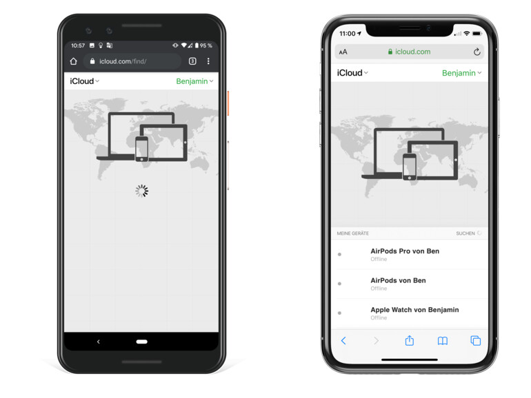 Für die meisten Nutzer dürfte allerdings die „iPhone-Suche“ am praktischten sein, wenn das iPhone verlegt oder gestohlen wurde. In diesem Fall kann man über iCloud.com und die Suchfunktion das Gerät mit wenigen Handgriffen orten, löschen oder in den „Verloren“-Modus versetzen. Auch die Wiedergabe eines Tons ist möglich. Übrigens lassen sich in „iPhone-Suche“ auch Geräte von Familienmitgliedern aufspüren. Unklar ist jedoch, weshalb Apple „Freunde“ nicht integrierte und wie am iPhone in „Wo ist?“ unbenannte.