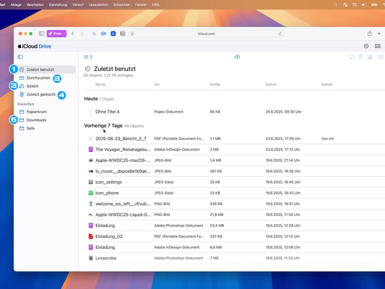 Dateien, die du aus iCloud Drive löschst, sind noch bis zu 30 Tage lang wiederherstellbar – danach werden sie endgültig entfernt. Um eine Datei zurückzuholen, melde dich auf iCloud.com an, öffne dort iCloud Drive und klicke in der Seitenleiste auf „Zuletzt gelöscht“. Über „Wiederherstellen“ am unteren Rand bringst du die gewählten Objekte zurück. Alternativ kannst du sie dauerhaft löschen.