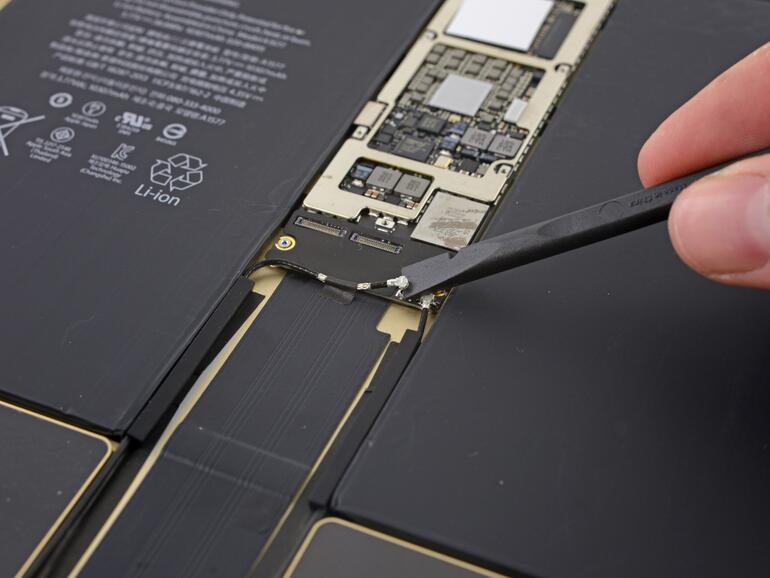 Überrascht war iFixit von der Größe der vier Lautsprecher. Apple hat zugunsten dieser Boxen vergleichsweise viel Platz geopfert, der auch durch einen größeren Akku ausgefüllt hätte werden können. Ersten Test-Berichten zufolge hat sich diese Entscheidung jedoch gelohnt: Die Soundqualität des iPad Pro wird mit hervorragende bewertet. Und der Akku ist mit 38,8 Wh (10.307 mAh) immer noch ausreichend groß, um das iPad Pro für rund 10 Stunden mit Strom versorgen zu können.