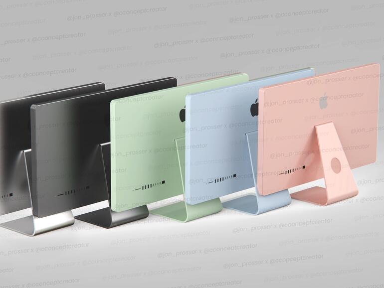 Allerdings geht der bekannte Leaker Jon Prosser davon aus, dass man sich doch eher am iPad Air orientiert. Seine Annahme begründet er mit der großen Farbauswahl, wie man sie bereits von der neuesten Tablet-Generation kennt. Aus zuverlässiger Quelle will er nämlich erfahren haben, dass der neue iMac nicht mehr nur in Silber erscheint. Demnach soll es in Space Grau, Roségold, Grün und Sky Blau zur Auswahl stehen. Dazu erstellte Prosser gemeinsam mit @CConceptcreator Renderaufnahmen, die sowohl das Design als auch die Farben zeigen.