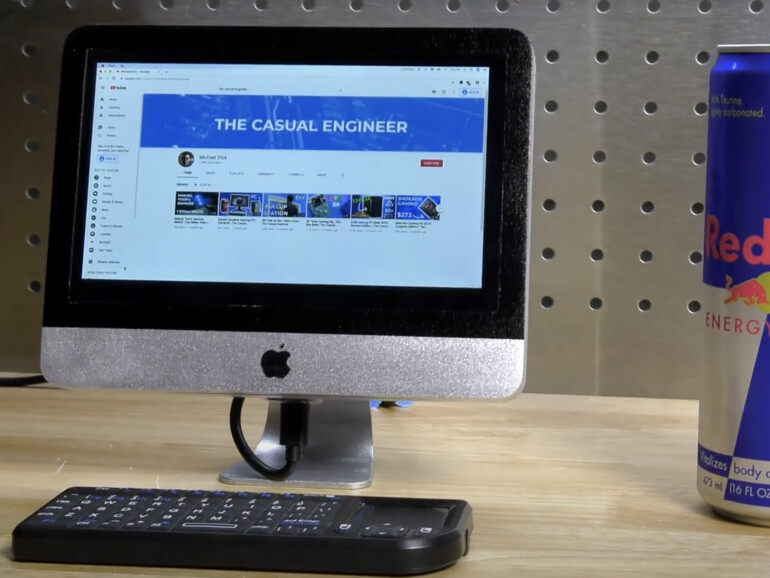Als kleines Highlight spielt er am Ende nicht nur Minecraft auf dem Mini-iMac, sondern er hat sogar ein Theme installiert, das macOS ähnelt, um das richtige Flair zu vermitteln. Wenn du dich jetzt fragst, wie groß der kleine iMac eigentlich ist, dann hat auch Ingenieur eine ganz einfache Antwort darauf: Er ist so groß wie eine 473ml-Red-Bull-Dose.