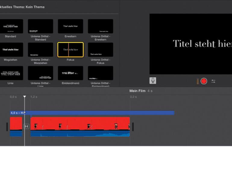 Mit iMovie können Sie ohne großen Aufwand spaßige Film-Trailer erstellen. Dazu klicken Sie auf den Neu-Knopf in der oberen Fenster-Bereich und wählen die Option Trailer. Anschließend wählen Sie ein Thema Ihres Trailers aus. Die Anwendung erstellt daraufhin automatische Übergänge und Texteinblendungen. Eine filmreife Musikuntermalung gibt es ebenfalls dazu.