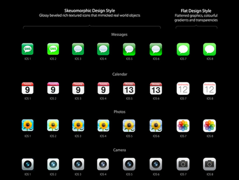 Seit der Einführung von iOS 7 lässt sich sehr gut beobachten, wie Apple auch an kleinsten Details weiter arbeitet. Diese Änderungen werden gerade auf Apple-Newsseiten akribisch dokumentiert. Die Infografik zu den iOS-Icons zeigt aber sehr schön, dass Apple auch bei den vorherigen iOS-Versionen immer wieder an der Icon-Optik gefeilt hat.