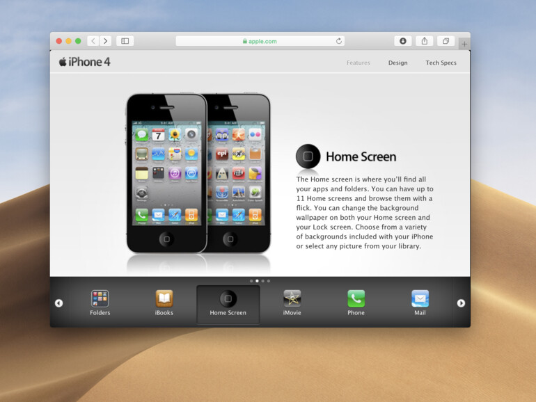 Wenn man sich durch die Website klickt, dürfte natürlich auch das Design auffallen. Heute wirkt es altbacken, war damals aber modern. Der Skeuomorphismus half den Nutzern unter anderen dabei, die Bedienung schneller zu erlernen, da durch realistisch wirkende Materialien eine gewisse Vertrautheit geschaffen wurde. Mit iOS 7 schaffte Apple die Stilrichtung jedoch ab und besann sich auf ein deutlich moderneres sowie minimalistischeres Design, das bis heute zahlreiche Detailverbesserungen erhielt.