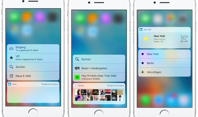 Mit der Einführung von 3D Touch tauchten erstmals die sogenannten Quick Actions auf, die den Nutzer direkt in bestimmte Funktionen von Apps einsteigen lassen. In iOS 10 geht Apple einen Schritt weiter und versieht die Quick Actions mit zusätzlichen Funktionen, die Widgets nicht nur ähneln, sondern auch als solche verwendet werden können.