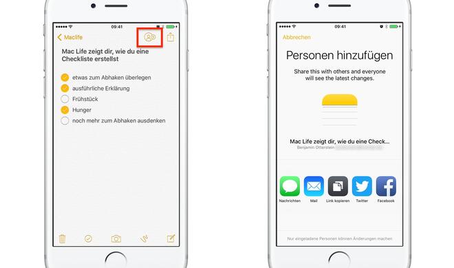 Nachdem die Notiz-App in iOS 9 und iOS 9.3 mit großen Neuerungen bedacht wurde, halten sich die neuen Funktionen für iOS 10 in Grenzen. Kurz und knapp kann man jetzt Notizen teilen beziehungsweise gemeinsam mit weiteren Personen bearbeiten. Dies kann etwa für Urlaubsplanung oder andere private Projekte sinnvoll sein.