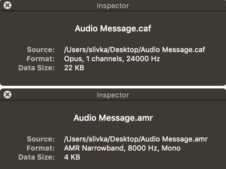 Unter iOS 12.1.4 hält Apple die Dateigrößen der Sprachnachrichten sehr klein, indem man das AMR-Codec mit 8.000 Hz verwendet. Dadurch leidet allerdings auch die Audioqualität hörbar. Mit iOS 12.2 wird Apple jedoch zum Opus-Codec mit 24.000 Hz wechseln und das amr-Dateiformat zugunsten des CAF-Formats aufgeben. Dadurch soll auf Geräten mit iOS 12.2 und macOS 10.14.4 die Qualität steigen. Bemerkbar macht sich dies durch eine klarere Aufnahme, die zudem lauter ausfällt.