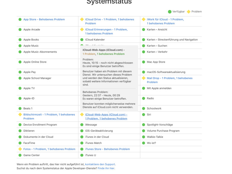Mittlerweile hat Apple das Problem behoben und die Dienste auf Statusseite um entsprechende Zusätze ergänzt. Demnach waren „einige Benutzer“ gestern zwischen 14:00 Uhr und 17:45 Uhr von dem unbekannten Fehler „möglicherweise“ betroffen. Die Hintergründe dazu sind allerdings ungeklärt.