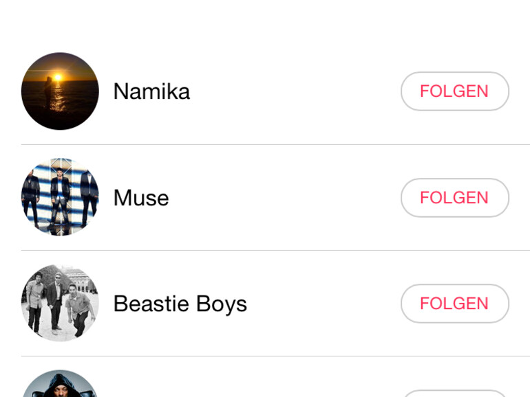 Das Soziale Netzwerk, in dem Künstler und Fans in Kontakt treten können, ist denkbar einfach zu bedienen und übersichtlich. Standardmäßig sind bereits populäre Künstler gelistet. Wenn ein Künstler nicht in der Liste auftaucht, kann der Nutzer über das Lupen-Symbol nach ihm oder ihr suchen. Praktisch: Gleichzeitig blendet die App beliebte Suchbegriffe ein, die weitere Künstler enthalten beziehungsweise vorschlagen.