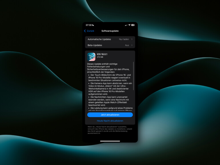 iOS 18.0.1: Kleinere Fixes, große Wirkung