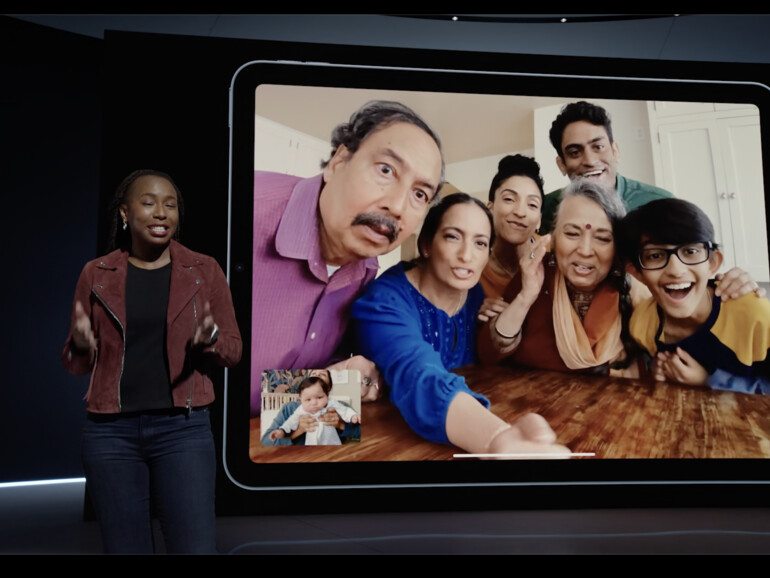 Eines der besten neuen Features von Apple des letzten Jahres erhält nun auch Einzug auf dem iPad Air. Die Rede ist von Center Stage. So bezeichnet Apple die eigene Technologie, die dafür sorgt, dass die Kamera dir folgt, wenn du dich während einer Videokonferenz bewegst. Das funktioniert dank der neuen Ultraweitwinkelkamera, die Apple in der Front sowohl beim iPad Pro, dem iPad mini 6 und dem iPad der 9. Generation verbaut hat. Die Neural Engine des neuen M1-Chips im iPad erkennt sogar, wenn weitere Menschen hinzukommen und erweitert dann den Bildbereich.