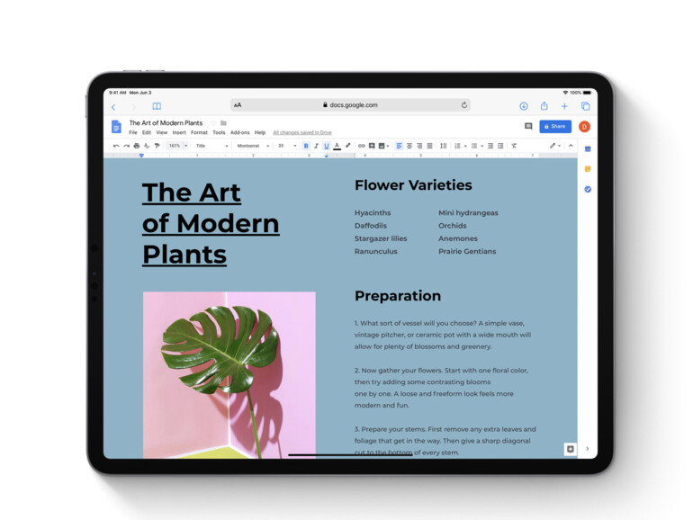 In Dokumenten erhalten Sie zudem neue Gesten, um Inhalte schnell zu kopieren und wieder einzufügen. Ziehen Sie etwa drei Finger zusammen, dann wird eine markierte Passage kopiert. Tippen Sie dann auf eine andere Stelle und öffnen die drei Finger, wird der Inhalt dort eingefügt. Daneben gibt es zahlreiche neue Shortcuts für Tastaturen.