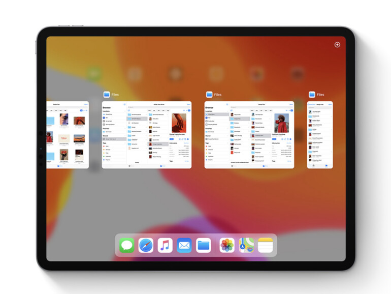 Schon mit Safari zeigte man die Möglichkeit, dass das iPad zwei Fenster einer App nebeneinander anzeigen kann. Mit iPadOS erweitert Apple dies auf sämtliche Apps, sodass Sie etwa zwei Pages-Dokumente, zwei Notizen oder beispielsweise auch zwei E-Mails nebeneinander öffnen können. Auch App-Exposé kommt vom Mac auf das iPad und zeigt ihnen mit einem Wisch alle Fenster einer App schön übersichtlich an.