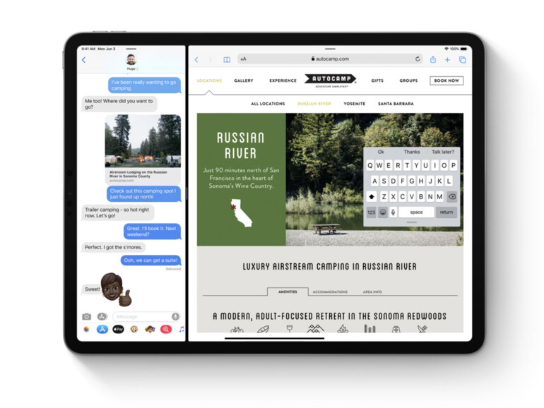 Schon mit Safari zeigte man die Möglichkeit, dass das iPad zwei Fenster einer App nebeneinander anzeigen kann. Mit iPadOS erweitert Apple dies auf sämtliche Apps, sodass Sie etwa zwei Pages-Dokumente, zwei Notizen oder beispielsweise auch zwei E-Mails nebeneinander öffnen können. Auch App-Exposé kommt vom Mac auf das iPad und zeigt ihnen mit einem Wisch alle Fenster einer App schön übersichtlich an.