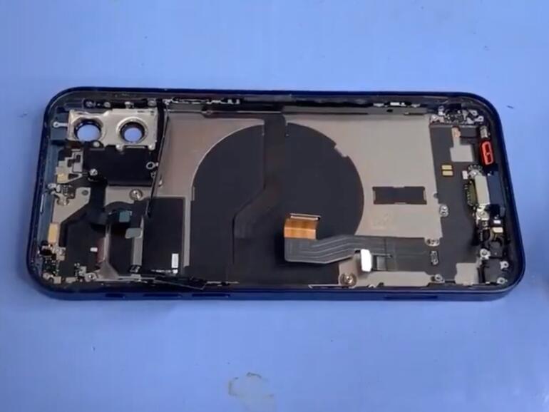 Das Video zeigt auch die Kameras des iPhones und den Akku, der eine Kapazität von 2.815 mAh aufweist. Auch das Magnetsystem namens MagSafe ist zu erkennen, mit dem Zubehör am iPhone befestigt werden kann. Dazu zählt unter anderem eine Ladeschale.