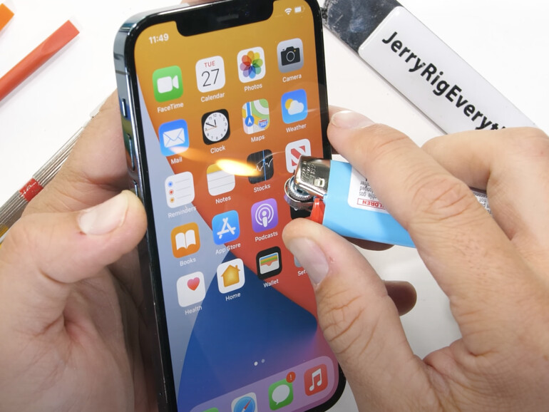 Zack Nelson von YouTube-Kanal JerryRigEverything macht wie mit jeder neuen iPhone-Generation auch mit dem neuesten Modell den ultimativen Test. Mit Feuer, Cuttermesser und Spezialwerkzeug geht er an ein pazifikblaues iPhone 12 Pro heran und versucht herauszufinden, ob es hält, was Apple verspricht.
