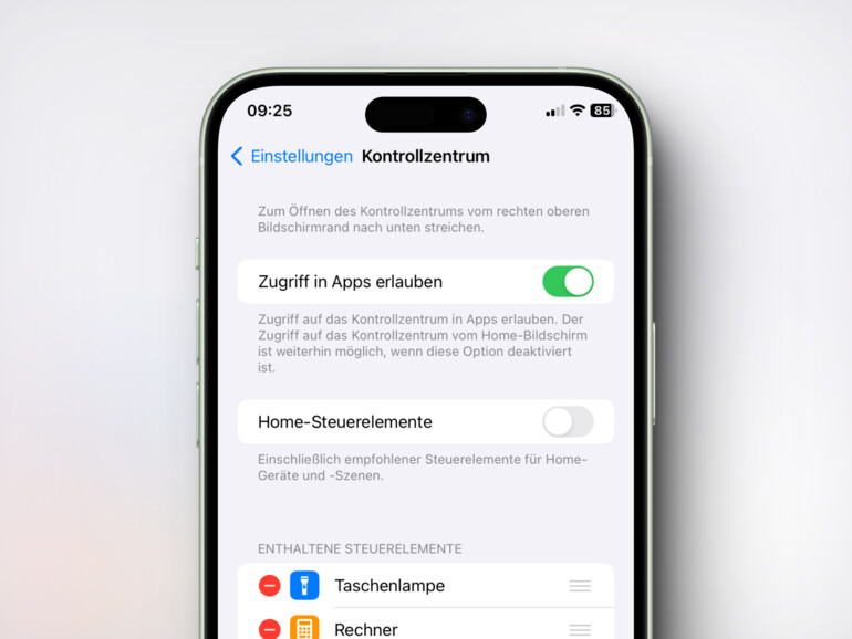 2. Neue Steuerungen im Kontrollzentrum sind verfügbar.