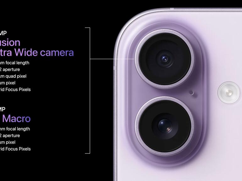 Und damit nicht genug. Neben der 48-MP-Hauptkamera findet sich nun ein 48-MP-Ultraweitwinkel. Damit klopft das Standardmodell an die Tür der Pro-Varianten, die allerdings natürlich eine dritte Kamera für Teleaufnahmen haben.