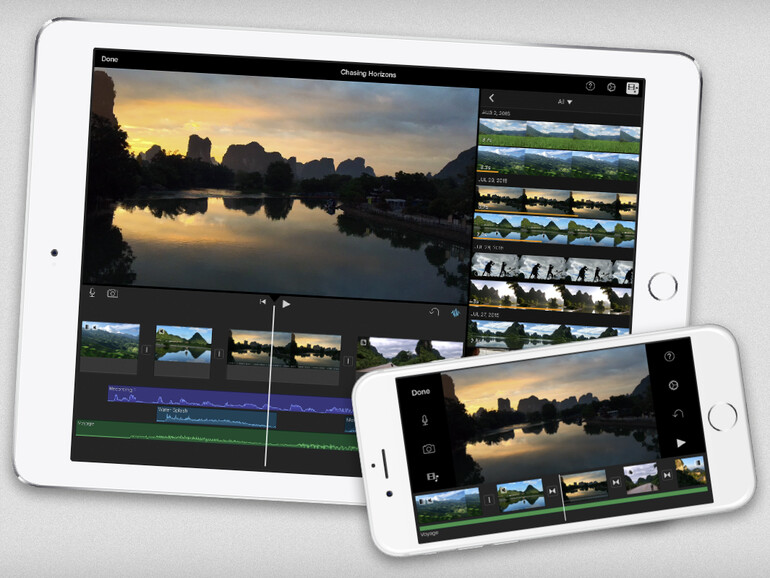 iMovie kann zwei 4K-Streams bearbeiten und abspielen – zum Beispiel bei Bild-in-Bild-Effekten. Und da das Arbeiten schon auf dem iPhone flüssig geht, macht es auf dem iPad Pro noch mehr Spaß. Hier hat Apple in der Keynote auch eine Demo gezeigt, wie gut der Schnitt damit funktioniert.