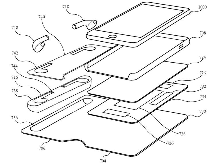 Innerhalb des aufgetauchten Patents meldete Apple verschiedene Konfigurationen an, die die AirPods oder anderes Zubehör schützen und gleichzeitig aufladen können. Dazu gehören etwa Cover, Folios, Wallets und andere Varianten. Besonders interessant sind dabei Versionen mit einer großen Aushöhlung. Für diese soll es Einsätze geben, die sich an die Größen der Accessoires anpassen, sodass man daran AirPods oder AirPods Pro verstauen kann.