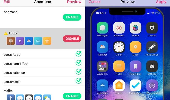 Sonderlich viel lässt Apple dir nicht bei der Individualisierung. Du kannst den Bildschirmhintergrund ändern, die Anordnung der App-Icons sowie Widgets festlegen und eine schicke Schutzhülle verwenden. Mehr nicht. Mit einem Jailbreak lässt sich dies ändern. Wie unter Android erlaubt dir beispielsweise die Cydia-App „Anemone“ die Installation von Themes, um einen neuen Look zu erhalten.