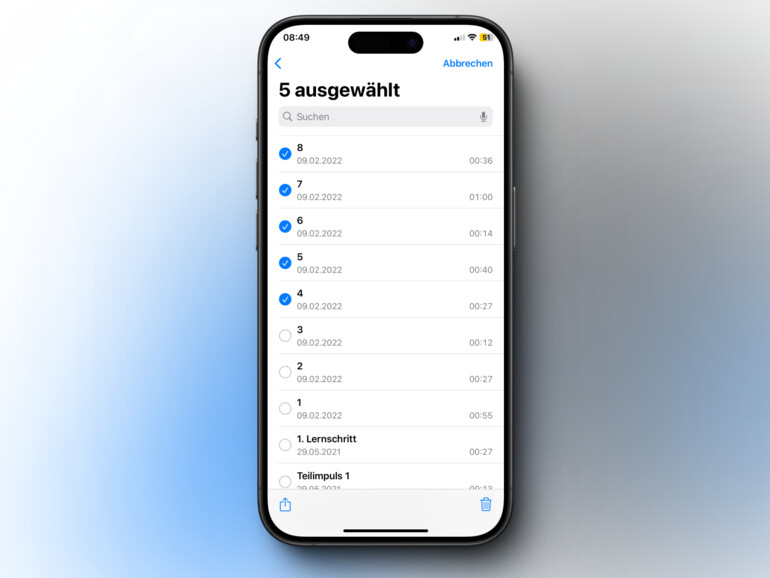 Diese Gestenfunktion ermöglicht es dir, einfach mehrere Elemente in Apps wie Kontakte, Mail, Nachrichten, Sprachmemos, Notizen und allen anderen Apple-Apps, die eine Liste anzeigen, auszuwählen (oder abzuwählen). So funktioniert es: