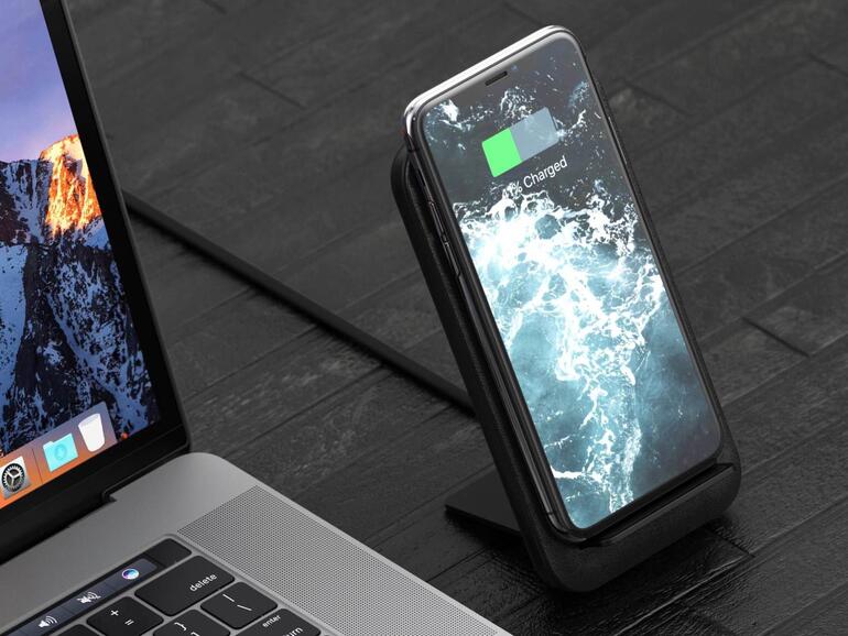 Nomad hat dazu einen Clip integriert, der beim Transport oder als Ladematte in der Unterseite verschwindet. Dieser kann auch einfach durch die freie Öffnung geschoben werden, um den Wireless Travel Stand eben in einen solchen zu verwandeln. Als Stand verwendet bietet das Qi-Ladegerät von Nomad einen Vorteil gegenüber der Konkurrenz, wenn es um das Entsperren via Face ID und die weitere Verwendung geht. Da das iPhone X aufrecht geladen werden kann, funktioniert die Entsperrung mittels Gesichtserkennung ohne das Gerät anheben oder sich unnatürlich darüber beugen zu müssen.
