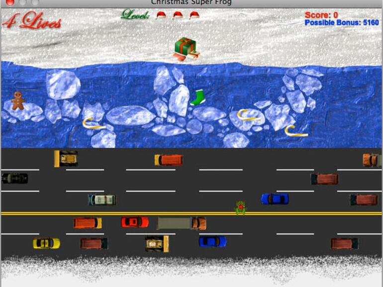 Heute ist Erholung angesagt! Und was könnte dafür besser sein als ein kleines Spielchen? Helfen Sie dem winzigen Frosch in Christmas Super Frog, die über die ganze Stadt verteilten Geschenke einzusammeln, die der Weihnachtsmann doch tatsächlich verloren hat. Eine wichtige Aufgabe - tausende, ja, Millionen von Kindern stünden sonst ohne am Heiligabend ohne Geschenke da! Aber Vorsicht: Das Überqueren von Straßen ist riskant - denn Autofahrer im Dezember-Stress bremsen nichtmal für Weihnachts-Frösche in wichtiger Mission ...
