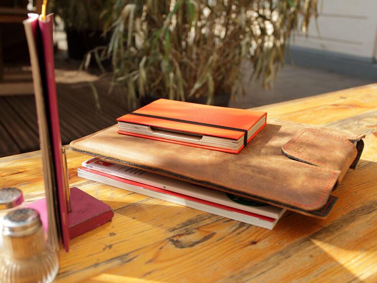 Die MacBook-Hülle von Germanmade ist in Deutschland handgefertigt und aus echtem Leder. Nicht nur durch die Farben, sondern auch die Form und die knallig rote Naht ist sie ein echter Hingucker. Sie schmiegt sich passgenau ans MacBook an und bietet sicheren Schutz vor Kratzern und Stößen. Leider ist die eine Seite der Hülle offen und nicht verschließbar und so wandert dann doch ab und zu das ein oder andere Sandkorn hinein. Schade, denn sonst wäre die Hülle perfekt. ram